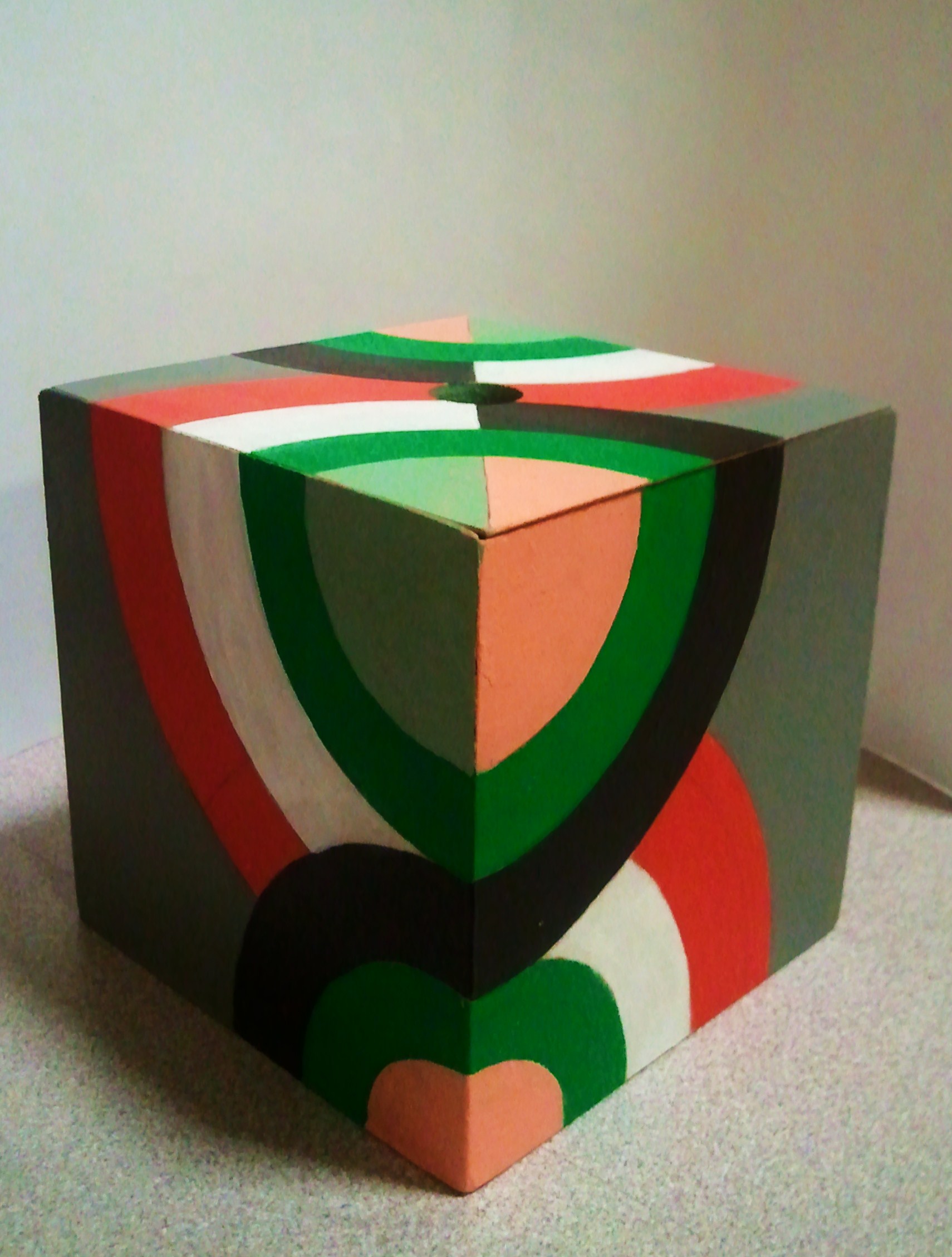 Had another workshop and the craftsman in me couldn’t resist making more of these boxes. Just needed some kind of design, luckily I’m writing an essay on Robert Delaunay. Particularly his work from 1920 onward, I’m a big fan of Orphism so the pattern just came naturally. And I swear circles are taking over my art.
